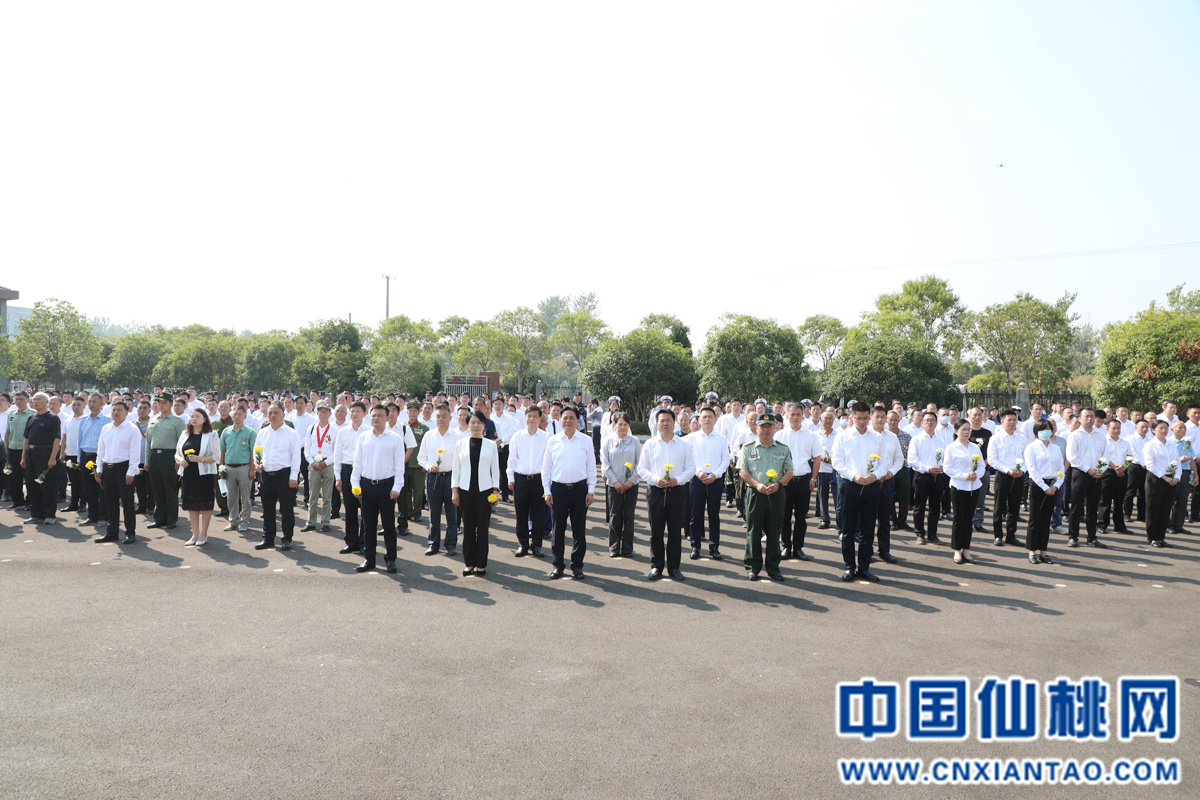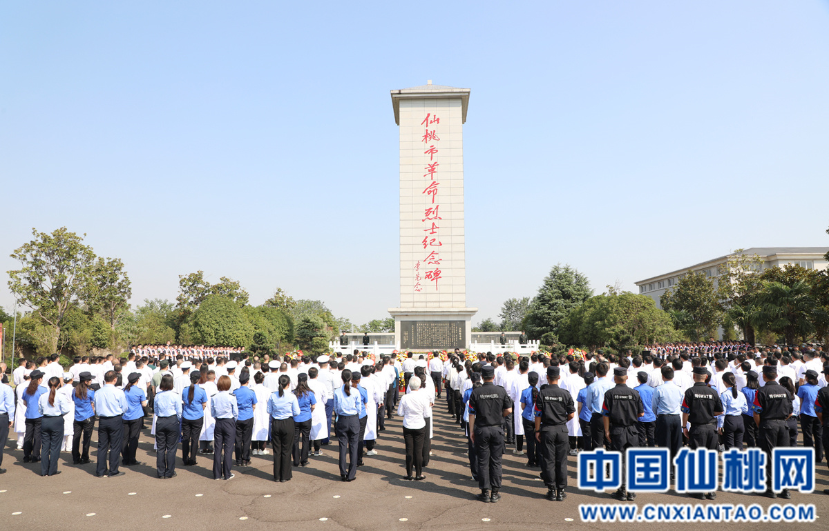 藍天白云下,菊花怒放、松柏蒼翠,烈士陵園莊嚴肅穆。廣場上,由已故國家主席李先念題寫碑名的“仙桃市革命烈士紀念碑”巍然矗立,近500名干部群眾代表列隊肅立。他們中有年過七旬的老戰士、老同志,有朝氣蓬勃的少年兒童,有身穿制服的職工代表,還有各行各業的先進人物。