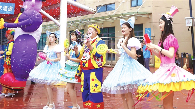 位于排湖風景區的荊楚云天海世界,總投資5.2億元,是我市重點推薦的國家3A級旅游風景點。6月17日,荊楚云天海世界夏季運營季正式開啟,開園儀式上,熱辣勁舞、萌態玩偶、瘋狂小丑等多樣演出與游客互動。圖為開園儀式現場。(仙桃日報 記者 晴霄 通訊員 李壯)