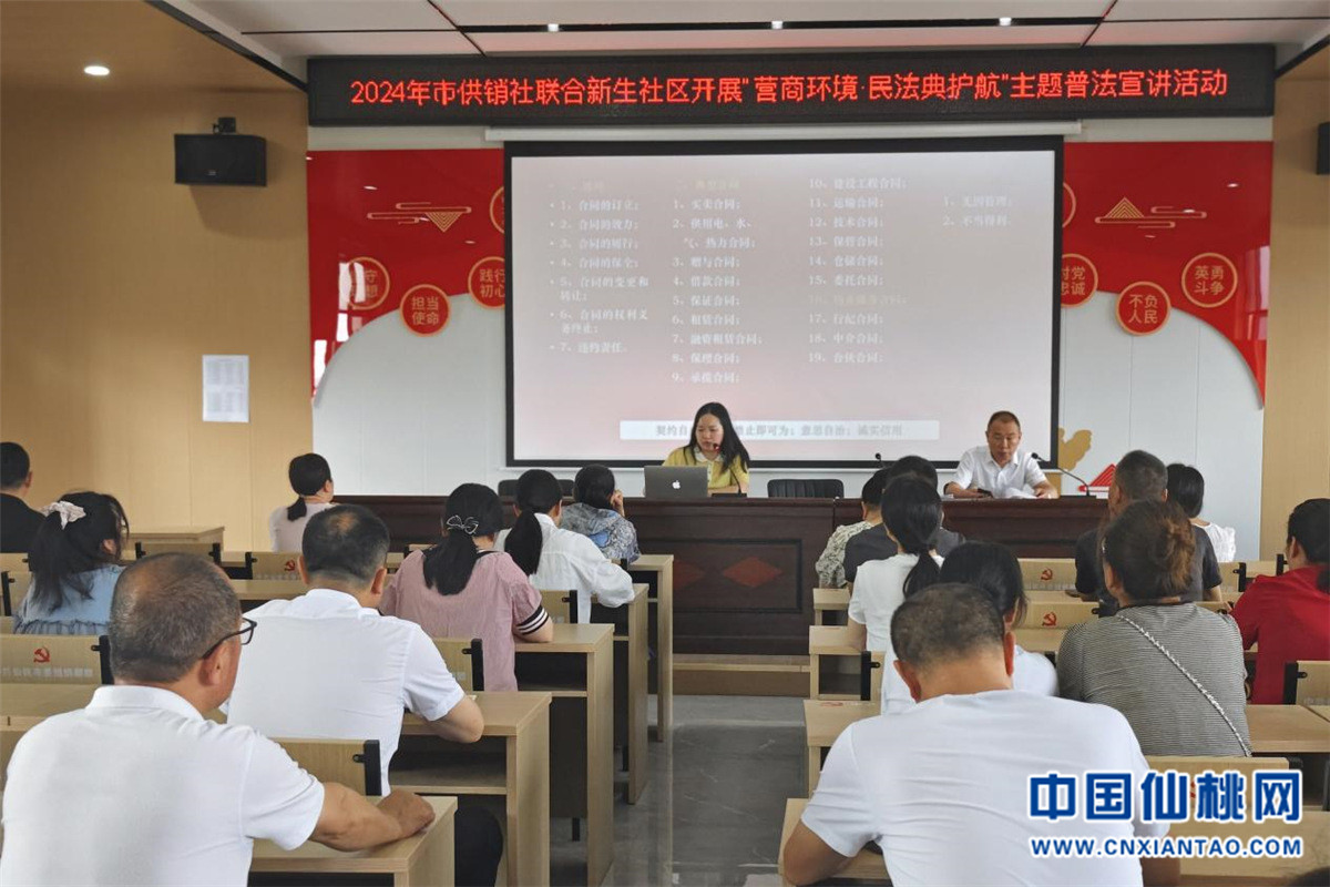 今年5月是第四個“民法典宣傳月”。為推動民法典學習宣傳走深走實,5月22日,市供銷社邀請了湖北瑞通天元律師事務所律師在新生社區開展“營商環境 民法典護航”主題普法宣講活動。