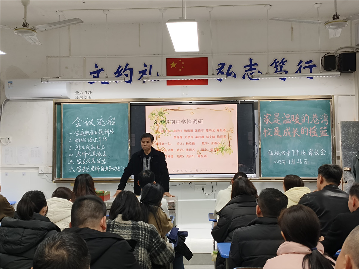“原來孩子關門不是叛逆,是在追尋獨立的小天地”“手機成癮的背后,或許藏著他在校園里渴望被關注的孤單”……11 月下旬,仙桃四中2025年秋季家長會在各年級教室溫情啟幕。本次以 “同心同行,共育未來 —— 關注成長,從‘心’開始” 為主題的家校之約,打破傳統 “成績通報” 模式,以心理健康為核心搭建溝通橋梁,讓數百位家長讀懂了青春期孩子未曾言說的 “隱藏語言”。?