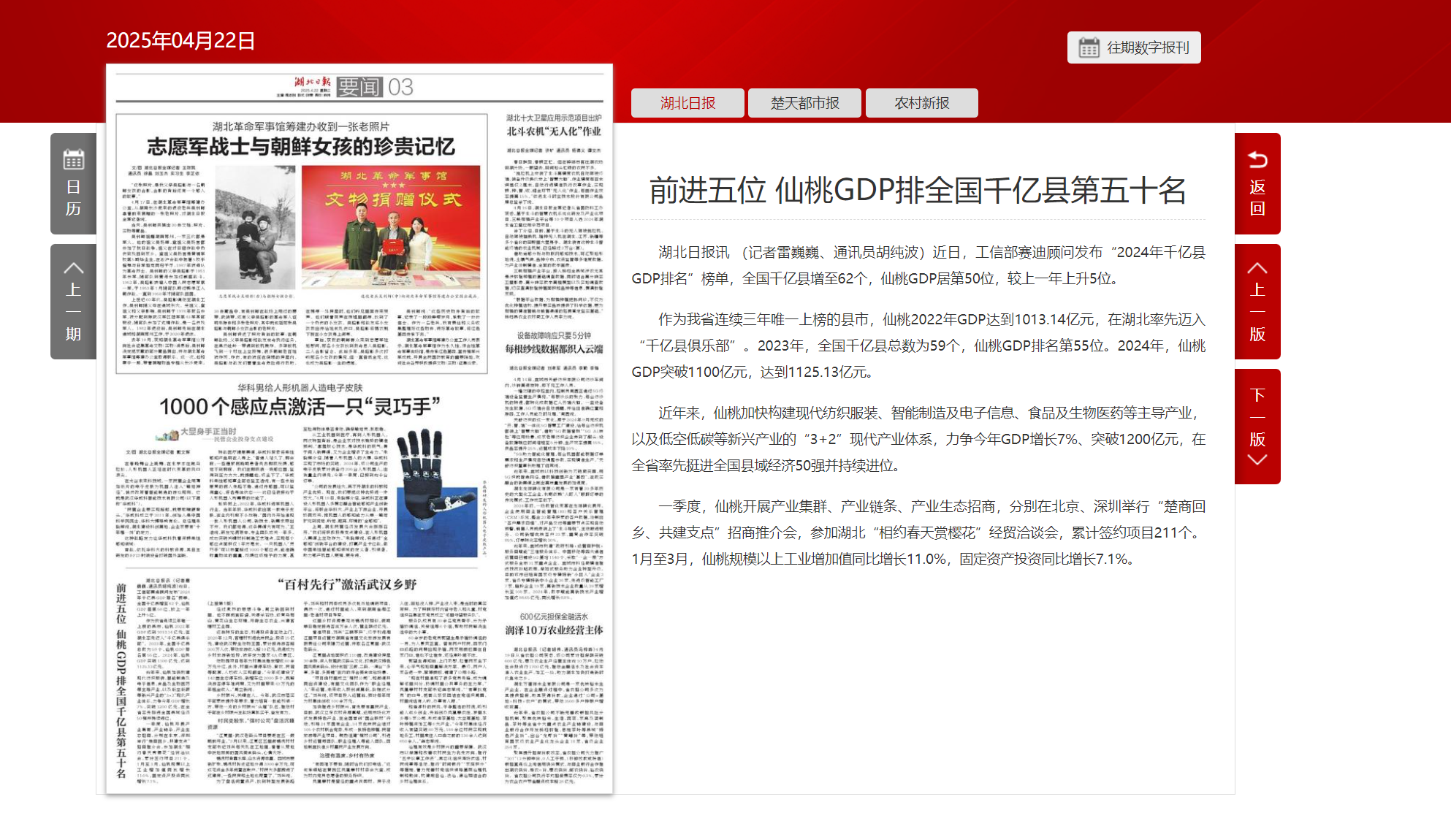 湖北日報:前進五位 仙桃GDP排全國千億縣第五十名