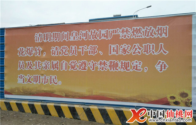 記者在紡織園區十字路口發現,這里張貼著醒目的“禁鞭”宣傳條幅。進入皇河故園園區,沿途宣傳牌上碩大的“禁鞭”兩個大字映入眼簾。從3月8日開始,該所加強宣傳帶動,制作文明祭掃宣傳欄、條幅,發布文明祭掃倡議書、公告,為市民免費提供鮮花和黃絲帶,禁止園區燃放煙花爆竹,還邀請20名志愿者引導宣傳,為文明祭掃、綠色祭掃營造良好氛圍。