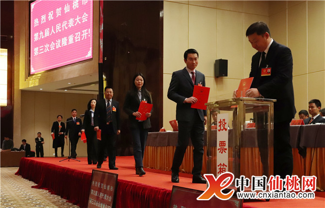 1月6日上午,出席市九屆人大三次會議的代表們投下了莊嚴的一票。圖為投票現場。(本網記者 胡肖文 郭閃)