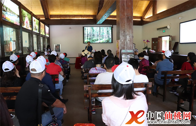 圖為市委黨校副校長沈祥華為僑界群眾介紹仙桃全域旅游的發展情況。