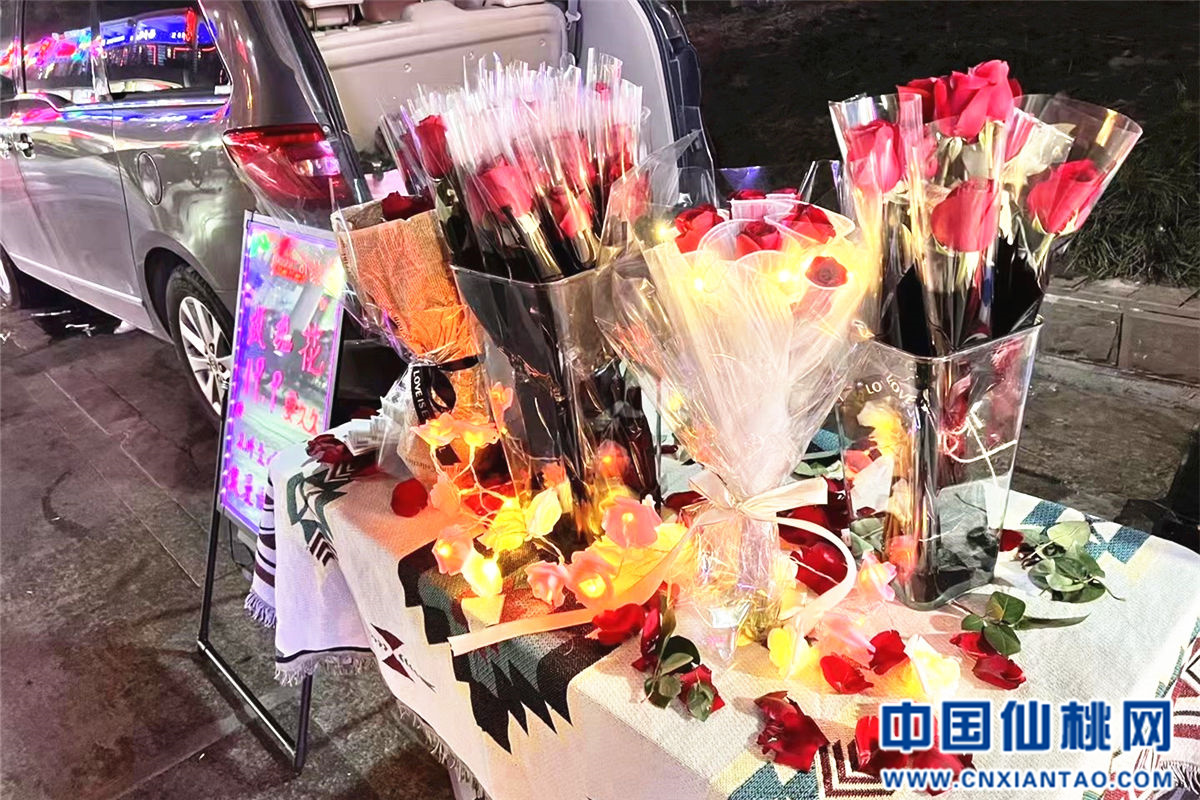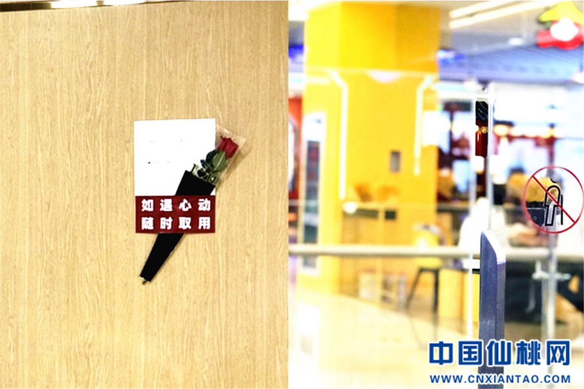 當天,仙桃商城推出的“應急玫瑰”活動,也引得市民們爭先恐后參與其中,走入商城內花香四溢,只見紅玫瑰被懸掛在墻上、玻璃上、電梯口、轉角處、甚至廁所口,還標注到“如遇心動,隨時領取”,商城工作人員說,市民若遇到心動之人,便可借花獻佛。(仙桃網記者 黃蕓)