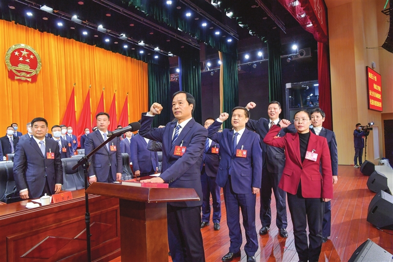 鏗鏘有力的誓言響徹整個會場,這是對憲法權威的尊重,也是一份沉甸甸的責任,更是對全市人民的莊嚴承諾。