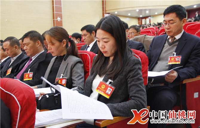 12月25日上午,參加仙桃市第九屆人民代表大會第二次會議的代表們在認真聽取和審查政府工作報告。(本網記者 胡肖文 陳芬)