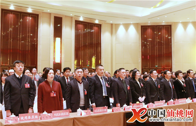 1月9日下午,市政協第九屆委員會第三次會議在仙苑酒店圓滿閉幕。圖為閉幕式上政協委員全體起立齊唱國歌。(本網記者 胡亮 陳芬 盛慧慧)