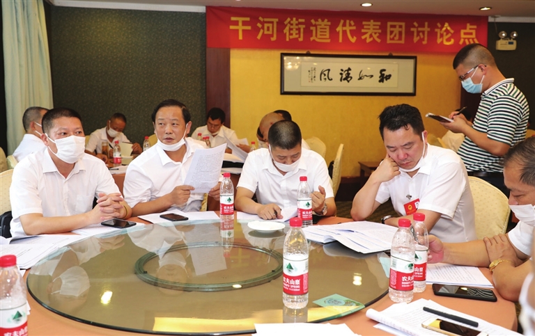 昨日下午,出席市九屆人大五次會議的代表進行分團審議,代表們圍繞非織造布特色小鎮建設、擦亮小城鎮暨美麗鄉村建設、脫貧攻堅等工作各抒己見,為推動仙桃經濟社會高質量發展建言獻策。圖為代表們在審議中。(攝影 記者 劉賢雙)