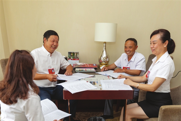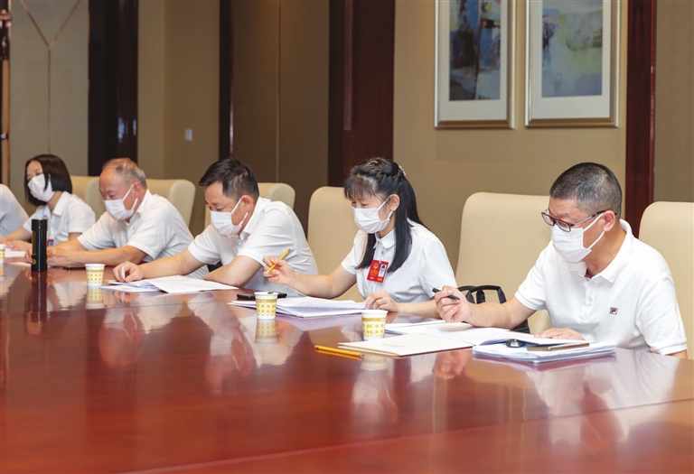 昨日下午,出席市政協九屆四次會議的委員,分組討論大會報告,談體會,提建議,為仙桃經濟社會高質量發展出謀劃策。圖為委員們在討論中。(攝影 記者 晴霄 鄭恒)